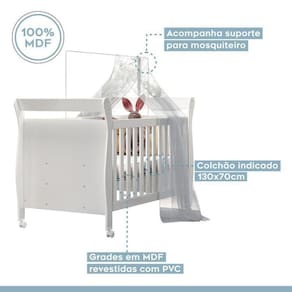 1x Berço Mini Cama 100% MDF Slim Branco Largura: 152 Altura: 106 Peso: 30 Profundidade: 81 Necessita Montagem: Sim