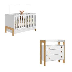 Quarto de Bebê Berço mini cama e Cômoda Fantasia Qmovi Esta linha foi desenvolvida para estimular a criatividade das crianças, com um design lúdico, moderno e seguro. O conjunto inclui um berço que se transforma em mini cama, acompanhando o crescimento do bebê, e uma cômoda com três gavetas e nicho decorativo. O berço é padrão americano -70cm-, possui estrutura em MDP e MDF com acabamento em pintura UV acetinada, estrado regulável em três alturas e suporte para mosquiteiro. Suas grades fixas garantem segurança, e os pés em MDF de 25mm dão charme e estabilidade à peça. Certificado pelo Inmetro, suporta até 40kg distribuídos. A cômoda conta com 3 gavetas com corrediças telescópicas, puxadores inspirados em couro, 1 nicho e 1 prateleira. Seu sistema anti-tombamento proporciona segurança extra no dia a dia, e o acabamento em pintura UV garante durabilidade e sofisticação.