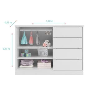 Chegou a hora de escolher os moveis para o quartinho do bebê, aqui você encontra as melhores opções, conta com lindos designs na cor Branco Acetinado que ira proporcionar modernidade ao ambiente. Apresentamos o Berço Multifuncional Cleo desenvolvido pela Carolina, Cômoda 2 portas e 4 gavetas e o Guarda Roupa Infantil Blenda que possui 3 portas e 4 gavetas para melhor organizar as roupinhas e acessórios do bebê, desenvolvida pela Phoenix. Aproveite, confira as características técnicas: