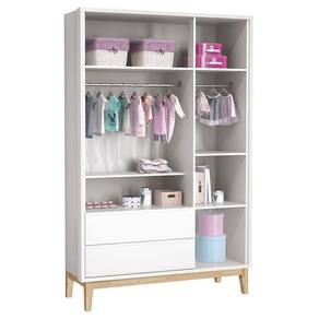 Guarda Roupa Infantil New Classic 3 Portas Branco com Pés Madeira Natural ? Reller