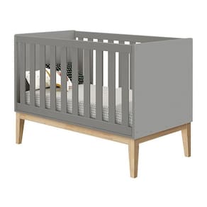 Berço Americano New Classic Cinza com Pés Madeira Natural Reller