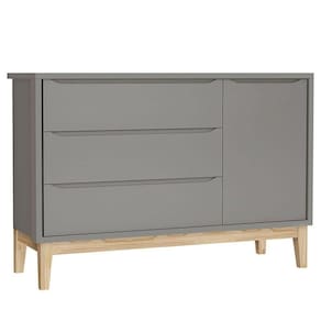 Quarto de Bebê Classic 3 Portas Cômoda com Porta Cinza com Pés Madeira Natural - Reller