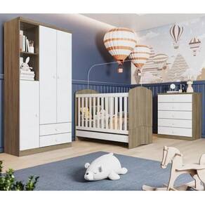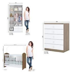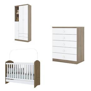 Quarto de Bebê com 1 Guarda Roupa 1 Cômoda e Berço 3 em 1 Abracadabra Espresso Móveis Rústico/Branco. Esse lindo Quarto de bebê Completo é tudo o que você pediu em um único ambiente. Toda essa combinação foi pensada para que este conjunto permaneça em sua casa por muitos anos acompanhando o crescimento de seus pequenos. O Berço Mini Cama traz todo o conforto e a segurança que seu bebê precisa para dormir tranquilo. Produzido em MDP, a sustentação possui revestimento interno e externo com pintura UV, esse revestimento assegura durabilidade ao móvel. Além de suas funcionalidades como, estrado com regulagem de altura, mosquiteiro, o berço se transforma em Sofá-cama e Mini-cama. O Roupeiro possui 3 portas e 2 Gavetas externas com corrediças metálicas e a cômoda possui 05 gavetas com corrediças metálicas, que permite um deslize mais seguro e suave. Ean: 7909903242964
