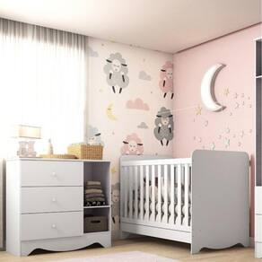 Quarto de Bebê com Berço Americano 3 em 1 e Cômoda 1 Porta com Janela Ben Móveis Peroba Branco Brilho. Conjunto Infantil com Cômoda 1 Porta com Janela 3 Gavetas e Berço linha Ben Seu desejo por montar o quartinho dos sonhos do seu bebê já pode se tornar realidade! Essa proposta da Móveis Peroba é muito encantadora além de todo custo benefício. São produtos desenvolvidos em 100% MDF, acabamento em pintura UV, bordas laqueadas e pintura atóxica. A cômoda possui corrediças telescópicas, que facilitam o deslize das gavetas, proporcionando maior durabilidade. Conta com janela em cristal pegt em sua porta, possibilitando a ver parte do interior. O berço pode ser utilizado como Mini Sofá ou Mini Cama, prolongando o uso e acompanhando o desenvolvimento do seu bebê. Adorou né! Então corre aproveitar. Ean: 7909903174487