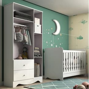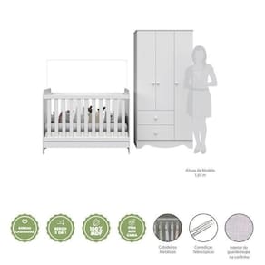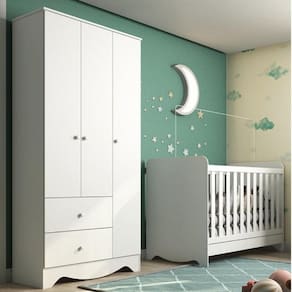 Quarto de Bebê com Berço Americano 3 em 1 e Guarda Roupa 3 Portas 2 Gavetas Ben Móveis Peroba Branco Brilho. Conjunto Infantil com Guarda Roupas 3 Portas 2 Gavetas e Berço linha Ben Seu desejo por montar o quartinho dos sonhos do seu bebê já pode se tornar realidade! Essa proposta da Móveis Peroba é muito encantadora além de todo custo benefício. São produtos desenvolvidos em 100% MDF, acabamento em pintura UV, bordas laqueadas e pintura atóxica. O guarda roupa possui corrediças telescópicas, que facilitam o deslize das gavetas, proporcionando maior durabilidade. O berço pode ser utilizado como Mini Sofá ou Mini Cama, prolongando o uso e acompanhando o desenvolvimento do seu bebê. Adorou né! Então corre aproveitar. Ean: 7909903072967