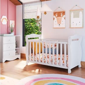 Quarto de Bebê com Berço Americano e Cômoda 1 Porta Cocada Espresso Móveis Branco Brilho. Proposta desenvolvida para oferecer qualidade, beleza, conforto e segurança para toda família na hora de montar o quartinho do(a) bebê. Produtos estrurados em 100% MDF e com acabamento em pintura UV atóxica. O berço possui padrão de colchão americano, estrado com altura regulável e todas as bordas arredondadas e laqueadas, que proporcionam mais segurança e uma sensação agradável ao toque, além de pode ser utilizado como mini cama ou mini sofá, prolongando seu uso. Já a cômoda possui amplas gavetas que deslizam suavemente por corrediças telescópicas, facilitando a abertura, uma prateleira que é ideal para acomodar as peças com organização da sua preferência. Também acompanha o produto, 2 opções de rodapés, um usinado (torneado) e outro retrô, para que você escolha no momento da montagem qual se adequa ao estilo do ambiente. Aproveite para adquirir o seu agora! Ambiente composto por: - 1 Cômoda Infantil 1 Porta e 3 Gavetas 100% MDF Cocada 89,4 x 92,9 x 42 (AxLxP - cm) - 1 Berço Mini Cama 3 em 1 Americano 100% MDF Cocada 99 x 148 x 78,40 (AxLxP - cm)