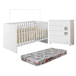 Proporcione ao seu bebê o melhor em conforto e organização com nosso conjunto de berço e cômoda. O berço oferece um ambiente seguro e aconchegante para o sono do seu pequeno, enquanto a cômoda espaçosa permite armazenar todas as necessidades essenciais do bebê. Com um design cuidadosamente pensado, este conjunto combina praticidade e estilo para atender às necessidades dos pais e do bebê. Acompanha Colchão: Sim Altura do Conjunto: 96 cm Ambiente: null Ambiente Principal: Quarto Cor: Branco Estrado com Regulagem de Altura: Não Informação Complementar: 1x Cômoda de Bebê 100% MDF 1 Porta 4 Gavetas Life Branco Largura: 94 cm Altura: 96 cm Peso: 32,5 kg Profundidade: 39 cm Necessita Montagem: Sim