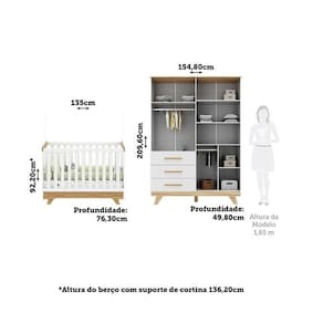 Quarto de Bebê com Berço e Guarda-roupa com Janelas 100% Mdf Retrô Kakau Espresso Móveis Branco Brilho/Amêndoa. Inspirado no estilo retrô do passado com um toque de modernidade a linha Kakau é encantadora. O berço é certificado pelo INMETRO no registro 000781/2018, tem a opção de ser utilizado como mini cama, acompanha um suporte para mosquiteiro e a base do colchão é regulável em 3 opções de altura, aumentando o conforto no uso diário e na segurança com o crescimento do seu pequeno(a). São móveis com acabamento em pintura UV atóxica e com a qualidade de ser produzido em 100% MDF. Tudo para oferecer um quartinho aconchegante, pratico e lindo para o seu bebê. Medidas dos produtos (cm): Berço: 92,20 x 135,50 x 76,30 (AxLxP) Guarda Roupa: 209,60 x 154,80 x 49,80 (AxLxP)