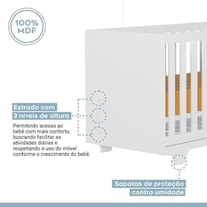 1x Berço Mini Cama 100% MDF com Colchão Life Branco Largura: 132.4 Altura: 81 Peso: 23 Profundidade: 67 Necessita Montagem: Sim