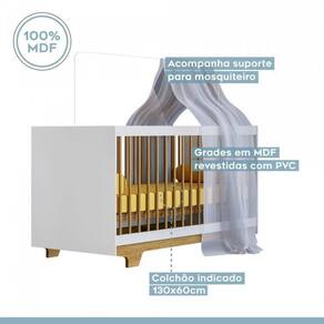 1x Berço Mini Cama 100% MDF Flocos Branco/Madeirado Ypê Largura: 132.4 Altura: 81 Peso: 23.9 Profundidade: 67 Necessita Montagem: Sim