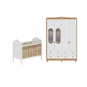Um ambiente encantador e delicado, transmitindo tranquilidade e conforto para todos. Produtos fabricados com linhas suaves com estrutura em 100 MDF e acabamento em Pintura UV at?xica ? o destaque deste ambiente. As gavetas possuem corredi?as telesc?picas para facilitar o deslize das gavetas e os espa?os internos proporcionam armazenamento pr?tico para roupas e itens essenciais em suas prateleiras e nos cabideiros em alum?nio. Algumas portas possuem janelas em PETG Cristal/Acr?lico permitindo a visualiza??o do seu interior. O ber?o ? um charme com suas bordas curvas, capiton? em corino e rod?zios. Al?m disso, ? certificado pelo INMETRO e pode ser utilizado como Mini Cama ou Mini Sof?, acompanhando o crescimento do seu beb?.
