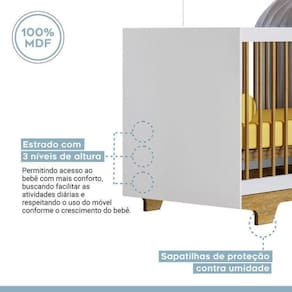 1x Berço Mini Cama 100% MDF com Colchão Flocos Branco/Madeirado Ypê