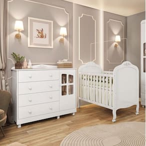 1x Cômoda de Bebê 1 Porta com Janela 4 Gavetas Maya Clássico Branco Brilho Largura: 120,3 cm Altura: 113 cm Peso: 48,1 kg Profundidade: 50,3 cm Necessita Montagem: Sim