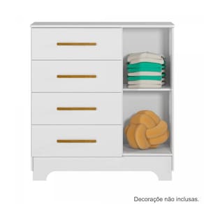 Quer deixar o quarto do seu bebê mais confortável e atraente? Então você vai se apaixonar por este dormitório Tigus. Composto por móveis selecionados por serem de alta qualidade e resistência, ele é ideal para deixar o quarto irresistível e organizado. Demais, né? Aproveite! Ambiente Principal: Quarto de Bebê calculo: unidade Certificado: OCAN-BER.278/19-4 Complexidade da Montagem: Alta: deve ser montado por um montador especializado Cr: Branco Cr do Produto: Branco Escala de Brilho: Brilhante Informações Complementares: "Quantidade de portas ; 1 : Quantidade de gavetas ; 4 : Quantidade de prateleiras ; 1 : Estrutura das Prateleiras ; MDF 12mm : Puxadores (material) ; PVC : Corrediças (tipo/ material) ; Metálicas : Quantidade de portas ; 0 : Quantidade de gavetas ; 4 : Qu Itens Inclusos: 1 Berço 1 Cômoda e Manual de Montagem. Manual de Montagem e Instalação: https://cdn2.madeiramadeira.com.br/atributo/tigus-baby/733182-minicama-life-comoda-fly.zip Material Principal: MDF Medida de Cada Item: Altura; 81cm Largura; 132,4cm Profundidade; 67cm Berço Mini Cama Life - Altura; 96cm Largura; 94cm Profundidade; 39cm Cômoda Fly Necessita Montagem: Sim Origem do Produto: Nacional Peso: 56 Pintura Atóxica: Não Recomendações de Uso, Manutenção e Limpeza: Limpar com pano macio e levemente umedecido. Não utilizar solventes a base e de inflamáveis. Não utilizar produtos abrasivos. Sistema de Montagem: Parafusos e cantoneiras. status-cadastro: Aprovado Suporta Até (kg): 90 Tamanho: