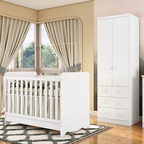 Quarto de Beb? Completo com Ber?o Minicama Ben e Guarda Roupa C?moda Smim New MDF M?veis Peroba. Os produtos foram desenvolvidos para oferecer qualidade, beleza, conforto e seguran?a para toda fam?lia na hora de montar o quarto do beb?.O Guarda Roupas Smim ? confeccionado em MDF e tem acabamento em pintura UV at?xica. Portas de bater tem dobradi?as met?licas e gavetas possuem corredi?as met?licas telesc?picas com deslize suave e silencioso, com puxadores pontuais em pl?stico. Acompanha dois modelos de rodap?s que podem ser escolhidos na hora de montar. Uma ?tima solu??o para espa?os reduzidos. ? um produto funcional e indispens?vel.