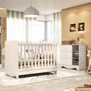 Quarto de Bebê com Cômoda 1 Porta e Berço Americano 3 em 1 Pirueta Espresso Móveis Branco Brilho. Quarto Infantil com Cômoda 3 Gavetas 1 Porta e Berço Mini Cama Mini Sofá Pirueta O momento da gravidez é muito especial, e montar o quartinho do bebê é uma tarefa realizada com muito amor, carinho e delicadeza. A linha Pirueta são produtos desenvolvidos em 100% MDF, acabamento em pintura UV, bordas laqueadas e pintura atóxica, um diferencial para oferecer maior segurança. A cômoda possui corrediças telescópicas, que facilitam o deslize das gavetas, proporcionando maior durabilidade. Já o berço é certificado pelo INMETRO (004867/2020) e super versátil, podendo ser utilizado como Mini Cama e Mini Sofá, e acompanha suporte para mosqueteiro. Lindos e graciosos! É a composição perfeita para o seu bebê.