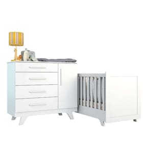 Quarto de Bebê com Cômoda e Berço 100% MDF Kakau Retrô Espresso Móveis Branco/Brilho. Inspirado no estilo retrô do passado com um toque de modernidade a linha Kakau é encantadora. O berço é certificado pelo INMETRO no registro 000781/2018, tem a opção de ser utilizado como mini cama, acompanha um suporte para mosquiteiro e a base do colchão é regulável em 3 opções de altura, aumentando o conforto no uso diário e na segurança com o crescimento do seu pequeno(a). São móveis com acabamento em pintura UV atóxica e com a qualidade de ser produzido em 100% MDF. As gavetas possuem corrediças telescópicas e suportam até 4kg cada. Tudo para oferecer um quartinho aconchegante, pratico e lindo para o seu bebê. Ean: 7909903218778