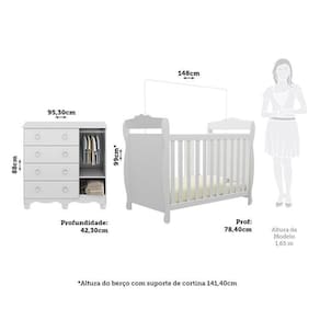 Largura do Conjunto: 148 cm Marca: Espresso Móveis Material Principal: MDF Permite a Utilização de Cama Auxiliar: Não Pintura Atóxica: Sim Possui Rodízio: Não Suporta Até (kg): 40.0000