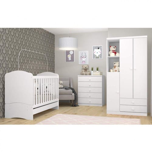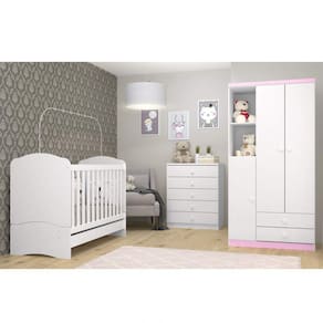 Esse lindo Conjunto de Quarto Infantilé tudo o que você pediu em um único ambiente. Toda essa combinação foi pensada para que este conjunto permaneça em sua casa por muitos anos acompanhando o crescimento de seus pequenos. Eleé perfeito para tornar o ambiente do seu filho ainda mais lindo e aconchegante. O Berço Mini Cama traz todo o conforto e a segurança que seu bebê precisa para dormir tranquilo. Produzido em MDP, a sustentação possui revestimento interno e externo com pintura UV, esse revestimento assegura durabilidade ao móvel. Além de suas funcionalidades como, estrado com regulagem de altura, mosquiteiro, o berço se transforma em Sofá-cama e Mini-cama. Acabamento: Pintura UV Altura: 180,5 cm Ambiente Principal: Quarto de Bebê Certificado: Sim Complexidade da Montagem: Alta: deve ser montado por um montador especializado Cor: Branco/Rosa Cor do Produto: Branco/Rosa Cor Flex: Branco/Rosa Cor Predominante: Branco Escala de Brilho: Brilhante Garantia: 03 meses Informações Complementares: Medida de Colchão Indicada para o Berço: 130cm x 60cm Largura: 91 cm Linha ou Coleção: Lápis de Cor Manual de Especificação Técnica: https://cdn2.madeiramadeira.com.br/atributo/m-veis-henn/446200-iec111-conjunto-l-pis-de-cor.pdf Manual de Montagem e Instalação: https://cdn2.madeiramadeira.com.br/atributo/m-veis-henn/446201-iec111-conjunto-l-pis-de-cor.pdf Material Principal: MDP Medida de Cada Item: Guarda Roupa: 180,5cm x 91cm x 40cm Berço: 101,5cm x 132,7cm x 68cm Berço com o suporte para mosquiteiro: 148,7cm x 132,7cm x 68cm Cômoda: 93cm x 75cm x 40cm Necessita Montagem: Sim Origem do Produto: Nacional Peso: 51 kg Profundidade: 46,5 cm Sistema de Montagem: Parafusos, Cavilhas e Pregos. Suporta Até (kg): 50