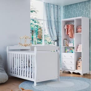 Qualidade, beleza, conforto e segurança para toda família na hora de montar o quartinho do(a) bebê. Essa é a proposta desenvolvida queridinha do momento. Produtos estrurados em 100% MDF e com acabamento em pintura UV atóxica. O berço possui padrão de colchão americano, estrado com altura regulável e todas as bordas arredondadas e laqueadas, que proporcionam mais segurança e uma sensação agradável ao toque, além de pode ser utilizado como mini cama ou mini sofá, prolongando seu uso. Já o guarda roupas possui gavetas que deslizam suavemente por corrediças telescópicas, facilitando a abertura, cabideiro metálico e prateleiras que são ideais para acomodar as peças com organização da sua preferência. Também acompanha o produto, 2 opções de rodapés, um usinado (torneado) e outro reto, para que você escolha no momento da montagem qual se adequa ao estilo do ambiente. Aproveite para adquirir o seu agora!