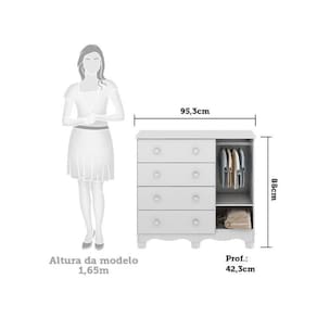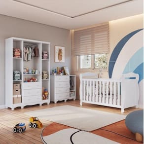 Quarto de Bebê com Guarda Roupa 4 Portas Cômoda 1 Porta e Berço Americano Nina Espresso Móveis Branco Brilho. Qualidade, beleza, conforto e segurança para toda família na hora de montar o quartinho do(a) bebê. Essa é a proposta desenvolvida queridinha do momento. Produtos estrurados em 100% MDF e com acabamento em pintura UV atóxica. O berço possui padrão de colchão americano, estrado com altura regulável e todas as bordas arredondadas e laqueadas, que proporcionam mais segurança e uma sensação agradável ao toque, além de pode ser utilizado como mini cama ou mini sofá, prolongando seu uso. Já o guarda roupas e a cômoda possuem gavetas que deslizam suavemente por corrediças telescópicas, facilitando a abertura, cabideiros metálicos e algumas prateleiras que são ideais para acomodar as peças com organização da sua preferência. Também acompanham os produtos, 2 opções de rodapés, um usinado (torneado) e outro reto, para que você escolha no momento da montagem qual se adequa ao estilo do ambiente. Aproveite para adquirir o seu agora! Ambiente composto por: - 1 Guarda Roupa Infantil 4 Portas e 3 Gavetas 100% MDF Mimo 188,5 x 122,10 x 41,80 (AxLxP - cm) - 1 Cômoda Infantil 1 Porta 4 Gavetas 100% MDF Mimo 88 x 95,3 x 42,3 (AxLxP - cm) - 1 Berço Mini Cama 3 em 1 Americano 100% MDF Cocada 99 x 148 x 78,40 (AxLxP - cm)