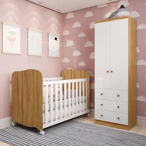 Quarto de Beb? com Guarda Roupa Smim New 2 Portas e Ber?o Uli 100 MDF M?veis Peroba O produto foi desenvolvido para oferecer qualidade, beleza, conforto e seguran?a para toda fam?lia na hora de montar o quarto do beb?. O Guarda Roupas Smim ? confeccionado em MDF e tem acabamento em pintura UV at?xica. Portas de bater tem dobradi?as met?licas e gavetas possuem corredi?as met?licas telesc?picas com deslize suave e silencioso, com puxadores pontuais em pl?stico. Acompanha dois modelos de rodap?s que podem ser escolhidos na hora de montar. Uma ?tima solu??o para espa?os reduzidos. ? um produto funcional e indispens?vel. O Ber?o infantil Uli tem medidas no padr?o americano e suporta at? 40 kg. O estrado possui 3 op??es de regulagem de altura, podendo ser utilizadas conforme o crescimento do seu beb?. Os rod?zios auxiliam no deslocamento do ber?o, e possui travas em duas das rodas para uma melhor fixa??o. ? um produto com excelente profundidade, estrutura 100 em MDF al?m de robusto garante qualidade e durabilidade. Acompanha varal para mosqueteiro. Para seguran?a do beb? as bordas s?o arredondadas e laqueadas. N?o acompanha colch?o.
