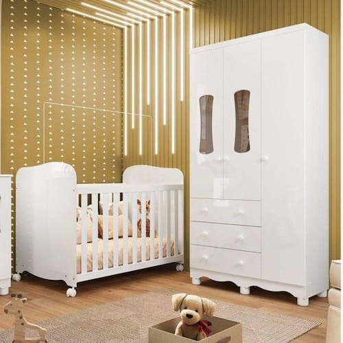 O Quarto Lana é perfeito para o seu bebê, oferecendo requinte e praticidade. Com um berço padrão americano com Rodízios e certificado pelo INMETRO, uma cômoda e um guarda-roupas com portas janeladas em PETG Cristal/Acrílico para facilitar a organização, este conjunto é ideal para pais que valorizam a segurança e o conforto. Feitos em 100% MDF e acabamento em Pintura UV atóxica, todos os detalhes foram pensados para criar um ambiente seguro e acolhedor para o seu filho. Prepare-se para momentos especiais com seu bebê no Quarto Lana. (Obs: Colchão não incluso e o berço não pode ser transformado em mini-cama).