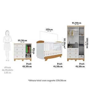 Produtos estrurados em 100% MDF e com acabamento em pintura UV atóxica. O berço possui padrão de colchão americano, estrado com altura regulável e todas as bordas arredondadas e laqueadas, que proporcionam uma sensação agradável ao toque, além de poder ser utilizado como minicama ou minisofá, prolongando seu uso.