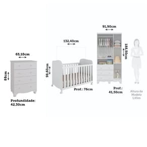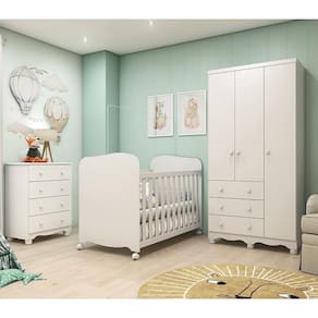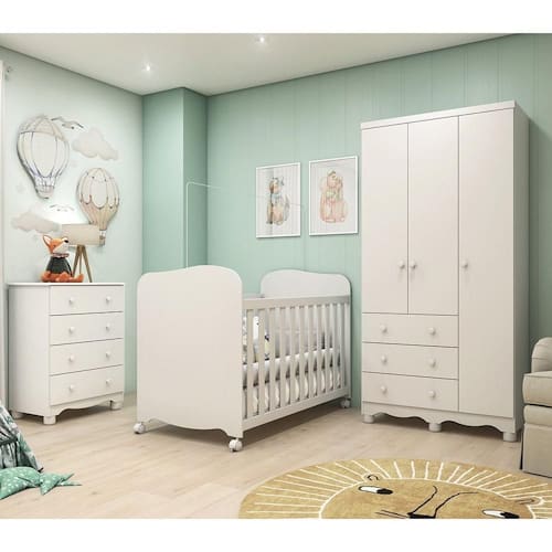 Procurando por móveis que ofereçam conforto e praticidade para a sua família? Esta proposta é perfeita para você! Produzidos em 100% MDF com acabamento em pintura UV atóxica, esse quarto garante a segurança de todos. O guarda-roupas conta com 3 portas e 3 gavetas com corrediças telescópicas, proporcionando facilidade no uso. A cômoda possui 4 gavetas com corrediças telescópicas .Já o berço possui bordas arredondadas, certificado pelo INMETRO, e acompanha varal para mosquiteiro. Aproveite essa oportunidade e adquira já o seu! Medidas do Ambiente (cm): Guarda Roupas: 188,5 x 91,9 x 41,5 (AxLxP - cm) Cômoda: 88 x 65,1 x 42,3 (AxLxP - cm) Berço: 98,6 x 132,4 x 76 (AxLxP)