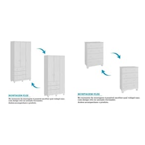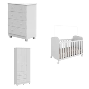 Quarto de Bebê com Guarda Roupas 3 Portas Cômoda e Berço com Rodizio Mimo 100% MDF Espresso Móveis Branco Brilho