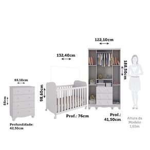 Medida de Cada Item: Guarda Roupa: 188,5 x 122,1 x 41,5| Cômoda: 88 x 65,1 x 42,3| Berço: 98,6 x 132,4 x 76 (AxLxP - cm)