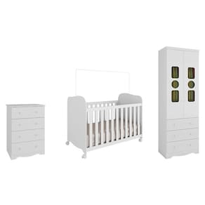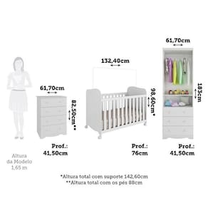 **Altura total com suporte 142,60cm Acompanha Colchão: Não Altura do Conjunto: 183 cm Ambiente Principal: Quarto de Bebê codigo_ean: 7900288110732 Cor: Branco Brilho Cor do Produto: Branco Brilho Estrado com Regulagem de Altura: Sim Informação Complementar: 1x Cômoda Infantil 4 Gavetas 100% MDF Mimo Branco Brilho Necessita Montagem: Sim