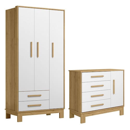 Quarto de Bebê com Roupeiro 4340 e Cômoda 4355 Qencanto Slim Qmovi Freijó Branco Acetinado - Marrom Chocolate