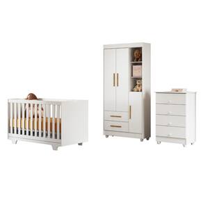 Quarto de Bebê Cômoda Berço e Guarda Roupa com Colchão Nina  Branco