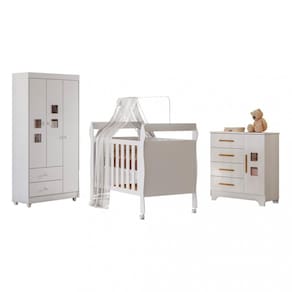 Apresentamos o Quarto completo Mila para o seu bebê, confeccionado com materiais de alta qualidade e pensado para oferecer praticidade e conforto. O berço minicama com três níveis de altura de estrado e rodízios inclusos, adapta-se perfeitamente às necessidades do seu pequeno. A cômoda, com 1 porta com detalhe em acrílico e 4 gavetas, além de 1 prateleira, oferece espaço amplo para organizar os pertences do bebê. O Guarda Roupa complementa o conjunto com suas 3 portas, 2 gavetas proporcionando uma ótima divisão interna para roupas e acessórios.