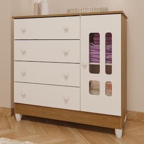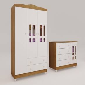 O dormitório ideal para a decoração do seu bebê. O guarda-roupa oferece amplo espaço com cabideiro, prateleiras e gavetas, garantindo que as roupas fiquem organizadas e sem amassados. Produtos fabricados em 100% MDF de alta resistência, é essencial para organizar roupas e acessórios, com travas anti-tombamento e corrediças telescópicas para maior e praticidade.