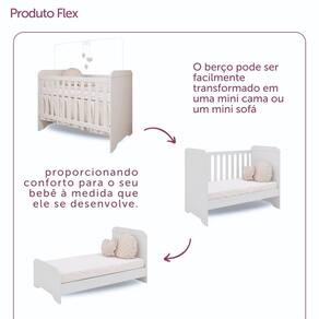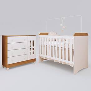 Nossas peças são em 100% MDF de alta resistência mecânica e ainda formam um par perfeito. O berço multifuncional é o melhor custo benefício, já que serve também como mini-cama e mini-sofá. A cômoda fraldário tem travas anti-tombamento que garantem mais segurança para o seu bebê. Estes produtos se encontram disponíveis nas cores Branco e Branco com Bétula.