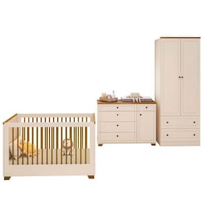 Desfrute da felicidade suprema no quarto do seu bebê com o Conjunto Dormitório Baby Ananda Casatema. Inspirado em um design ancestral que evoca bem-estar, este conjunto combina funcionalidade e beleza. O guarda-roupa com 2 portas e 2 gavetas oferece espaço inteligente e durabilidade em MDF certificado. A cômoda, com 5 gavetas, 1 porta e tampo em madeira maciça, apresenta pintura UV atóxica, corrediças telescópicas e opção de prateleira ou cabideiro, garantindo organização e segurança com seu kit antitombamento. O berço evolutivo 2 em 1, com grades palito em madeira maciça e 3 níveis de altura, acompanha o crescimento do seu filho, transformando-se em uma mini cama charmosa e segura. Materiais de alta qualidade e detalhes como usinados e kit antitombamento asseguram um ambiente acolhedor e protegido para o seu pequeno. Possui Rodízio: Não Acompanha Colchão: Não Altura do Conjunto: 220.2 cm Ambiente: null Ambiente Principal: Quarto Infantil Certificado: 001648/2025 Complexidade da Montagem: Média: pode ser montado por mais de uma pessoa e/ou necessite de maior conhecimento para montagem Cor: OffWhite/Mel Cor do Produto: OffWhite/Mel Escala de Brilho: Semi-Fosco Estrado com Regulagem de Altura: Sim Informação Complementar: 1x Berço Evolutivo 2 em 1 com Grades Palito em Madeira Maciça Baby Ananda OffWhite/Mel Largura: 75,4 cm Altura: 82 cm Peso: 35,3 kg Profundidade: 133 cm Necessita Montagem: Sim