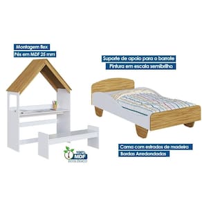 Tipo de Estrutura do Móvel: - MDF Espessura Material da Estrutura (mm): - Espessura 15mm Estilo do Móvel: - Moderno Tipo de Pintura: - Ultravioleta Tipo de Acabamento da Pintura: - Semi Brilho Tipo de Cama: - Cama Infantil Tamanho da Cama: - Solteiro Tamanho do Colchão Indicado: - Solteiro 88x188 Tipo dos Pés: - Pés Maciços em MDF Quantidade de Pés: - 4 Pés Recomendações de Uso: - Recomendações de Uso Montagem do Produto: - Desmontável, Necessita de montagem, Acompanha Manual de Instalação e Montagem, Opção de Montagem Flex Sistema de Montagem: - Inclui kit de instalação Garantia: - Garantia de 90 Dias