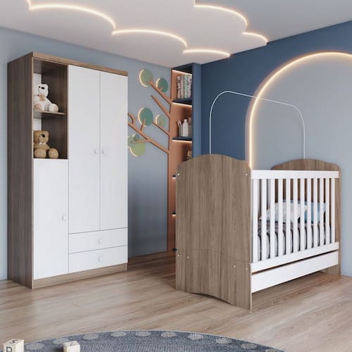 - Acompanha: 1 Guarda Roupa + 1 Berço + Kit Ferragens + Manual de Montagem
