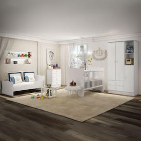 O(a) Quarto de Bebê Completo Bambino 3 Portas 6 Gavetas Branco - Percasa é produzido em MDP na escala de brilho Semi-Brilho, e possui um grau de dificuldade de montagem: Médio.