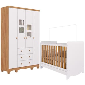 Inspiração para ter um quarto lindo, com decoração estilosa e muito funcional é o que não falta no Quarto de Bebê Completo com Berço Americano Ben 3 Em 1, Guarda Roupa 4 Portas e 3 Gavetas da Móveis Peroba.