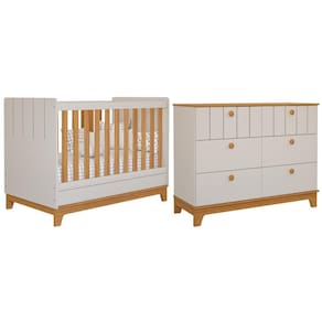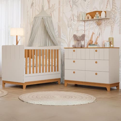A Cômoda Estilo Retrô complementa o berço com sua combinação de estilo e praticidade. Também confeccionada em 100% MDF com pintura atóxica e acabamento em laca, ela apresenta 6 gavetas espaçosas com puxadores em madeira maciça e detalhes em baixo relevo. O espaço projetado para o trocador oferece comodidade no dia a dia, enquanto o Kit Anti Tombamento garante segurança adicional. Juntas, essas peças criam um ambiente elegante, seguro e funcional para o quarto do bebê, atendendo às necessidades de organização com um toque de classe.