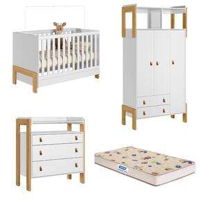 Quarto de Bebê Completo Berço mini cama Guarda-Roupa Cômoda Fantasia Qmovi e Colchão Gazin Toda a linha Fantasia foi desenvolvida para unir funcionalidade, segurança e design criativo, estimulando a imaginação das crianças desde os primeiros dias. Com detalhes modernos como pés em estilo madeira e puxadores inspirados em couro, os móveis tornam o ambiente mais acolhedor, divertido e elegante.