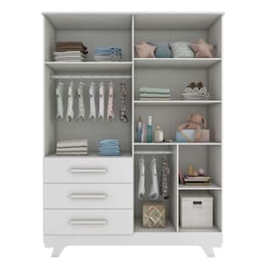 Quarto de Bebê Completo Berço Retrô Cômoda Guarda Roupa com Janela Móveis Peroba Branco Brilho. Inspirado no estilo retro do passado com um toque de modernidade a linha Retro da Móveis Peroba é encantadora. O berço é certificado pelo INMETRO no registro 000781/2018, tem a opção de ser utilizado como mini cama, acompanha um suporte para mosquiteiro e a base do colchão é regulável em 3 opções de altura, aumentando o conforto no uso diário e na segurança com o crescimento do seu pequeno(a). Todos os móveis são com acabamento em pintura UV atóxica e com a qualidade de ser produzido em 100% MDF. As gavetas possuem corrediças telescópicas e suportam até 4kg cada. Algumas portas possuem uma janela em acrílico, um detalhe delicado na composição do ambiente. Tudo para oferecer um quartinho aconchegante, pratico e lindo para o seu bebê. Ean: 7909903060643