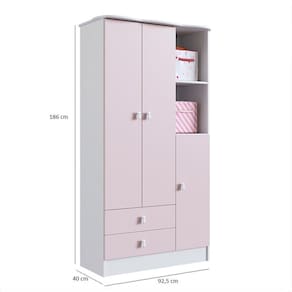 O Quarto de Bebê Completo Arco-Íris é composto por um Berço , um Roupeiro de três portas com dois nichos e uma cômoda com 4 gavetas. As corrediças são telescópicas, proporcionando um melhor deslize das gavetas.