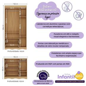 - Sistema antitombamento no guarda-roupa e cômoda: proporciona segurança para o bebê e tranquilidade aos pais.