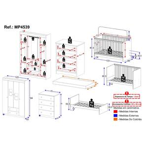 Conteúdo da Embalagem: 1 (um) Berço 1 (um) Colchão 1 (um) Guarda-roupa 1 (uma) Cômoda Manual de Montagem Kit Ferragem