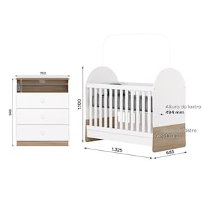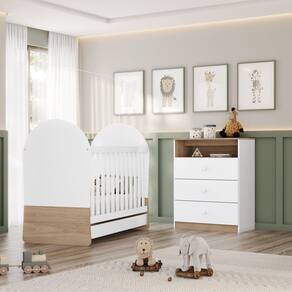 - Design Moderno e Cor amadeirada exclusiva; Acabamento da Gaveta: Pintura Texturizada UV Acompanha Manual de Instalação: Sim Acompanha Suporte para Mosquiteiro: Sim - Sem Véu Altura do Conjunto: 11 cm Ambiente Principal: Quarto de Bebê Certificado: 016 817/2024 Certificado INMETRO (código): 016 817/2024 codigo_ean: 7900288189196 Complexidade da Montagem: Alta: deve ser montado por um montador especializado Cor: Branco/Jequitibá Cor do Produto: Branco/Jequitibá Cor Interna: Trama Branco Escala de Brilho: Fosco Escala de Brilho da Gaveta: Brilhante Estampado: Não Estrado com Regulagem de Altura: Sim Estrado Regulável em Quantas Posições: 02 Informações Complementares: É importante fixar a cômoda e o Guarda Roupas na parede para evitar tombamento, peças para fixação estão inclusas. Largura do Conjunto: 68,5 cm Linha ou Coleção: Magia Manual de Montagem e Instalação: https://product-hub-prd.madeiramadeira.com.br/479402510/documents/61299e94-3a2d-4aec-99b0-5e49305f75292985687307517494816067233.pdf Marca: Henn Material da Gaveta: MDF/MDP Material do Estrado: MDF Material do Fundo: MDF Material do Puxador da Gaveta: ABS Material Principal: MDP Medida de Cada Item: Berço: (AxLxP) 110cm X 132,5cm X 68,5cm, Cômoda: (AxLxP) 94,5cm X 75cm X 40cm modular: Não Montagem Flex: Berço Pode ser covertido em Berço-Cama e Mini-Cama Necessita Montagem: Sim Origem do Produto: Nacional Permite a Utilização de Cama Auxiliar: Não Peso: Berço: 31kg: Cômoda: 26kg Peso de Cada Item: Berço: 31kg: Cômoda: 26kg Pintura Atóxica: Sim Possui Capitonê: Não Possui Certificado: Sim Possui Espelhos: Não Possui Gavetas: Sim Possui Grade: Sim Possui Portas: Não Possui Prateleiras: Não Possui Rodízio: Não Possui Trocador: Não Profundidade do Conjunto: 132,5 cm Quantidade de Gavetas: 03 Recomendações de Uso, Manutenção e Limpeza: Para limpeza de seu móvel, use uma flanela seca ou umedecida. Não utilize produtos químicos que possam danificar o produto. Sistema de Montagem: Parafusos e Cavilhas Tipo de Corrediça da Gaveta: Metálica Simples Tipo de Grade: Fixa Tipo de Guarda-Roupa: Infantil Tipo de Puxador da Gaveta: Externo