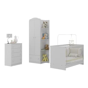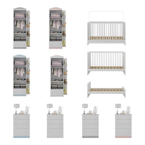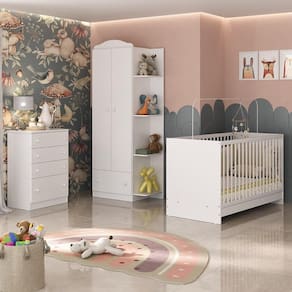 O Quarto de Bebê Completo com Berço 3 em 1 Multimóveis MP4145 é a escolha perfeita para um ambiente estiloso e confortável para o bebê. Produzido em MDP, garante durabilidade e resistência. Com acabamento acetinado (cerca de 20% de brilho), o berço é padrão nacional (tamanho do colchão 130 x 60cm), se transforma em sofá e minicama, acompanhando o crescimento do seu filho, possui 3 regulagens de altura para o colchão e acompanha suporte para mosquiteiro, garantindo noites mais tranquilas de sono para o bebê. As grades do berço são produzidas em MDF/madeira maciça de pinus. Berço certificado pelo INMETRO sob o selo n 0000085/2018. NÃO acompanha colchão. Com amplo espaço interno, o guarda-roupas possui 2 portas e uma gaveta, além de 4 prateleiras externas. A cômoda conta com 4 gavetas espaçosas e sistema anti-tombamento. A cômoda e o guarda-roupas possuem puxadores em ABS, corrediças metálicas (que oferecem leveza no manuseio) e ainda acompanham detalhes em 4 cores (Branco, Rosa, Azul e Cinza), permitindo que você escolha qual combina mais com sua decoração na hora da montagem.